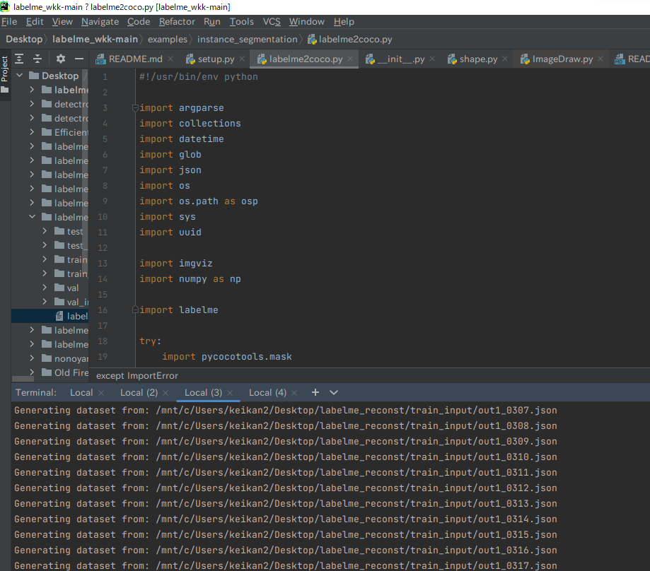 python examples/instance_segmentation/labelme2coco.py /mnt/c/Users/keikan2/Desktop/labelme_reconst/train_input /mnt/c/Users/keikan2/Desktop/labelme_reconst/train --labels /mnt/c/Users/keikan2/Desktop/labelme_reconst/labels.txt